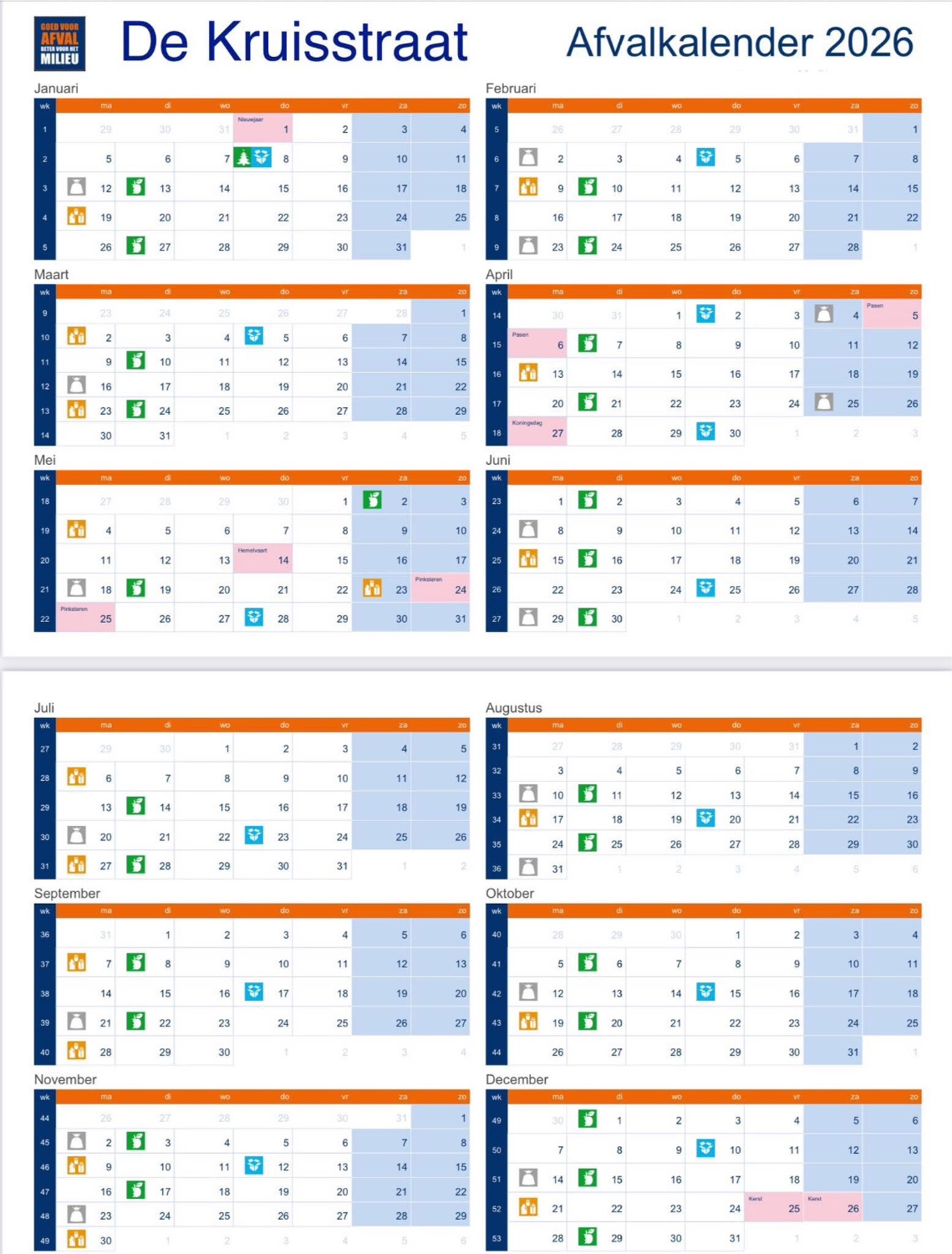 De afvalkalender 2026