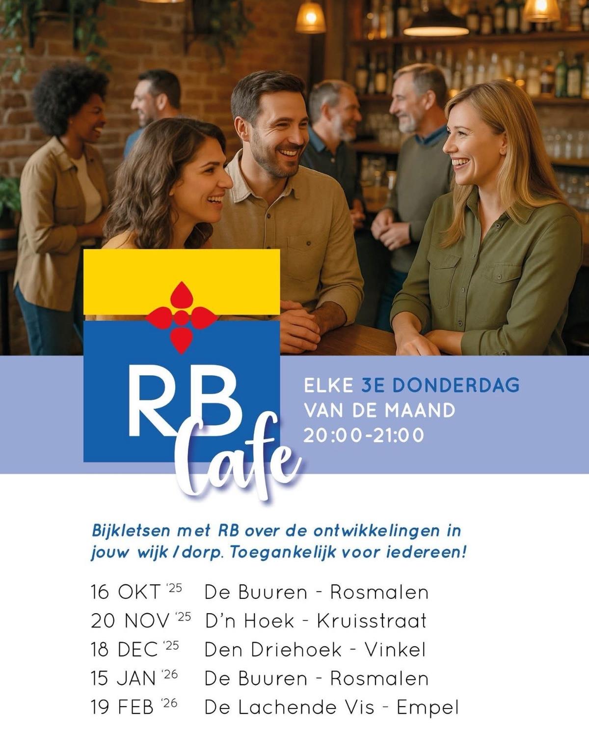 Het RB Café is onze open ontmoetingsavond waar je kunt binnenlopen om: